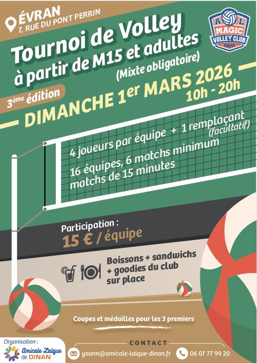 Tournoi de Volley organisé par l’AL Dinan le 1er mars 2026 !!!